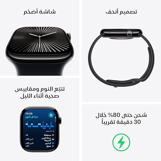 Apple Watch Series 10 GPS + Cellular 46mm – Jet Black Aluminium Case with Ink Sport Loop, Carbon Neutral ساعة آبل سيريس 10 GPS + Cellular مقاس 46 مم – هيكل ألومنيوم باللون الأسود النفاث مع حزام إنك سبورت لوب، معادلة للكربون